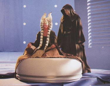 The most notable deletion to this sequence would be Shaak Ti's revised death. After her original death at the hands of General Grievous onboard the Invisible Hand was cut, Lucas opted to have her killed by Anakin in a similar fashion during the Temple Raid. This version of her death was filmed during pickups on September 3rd, 2004. Anakin would find Shaak Ti meditating in her quarters. Sensing him she asks, "What is it, Skywalker?" But there's no answer only a stab in the back by Anakin's lightsaber.