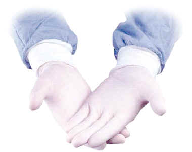 Remove the second glove by inserting finger under the second glove at the outside of the wrist. | |