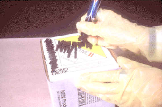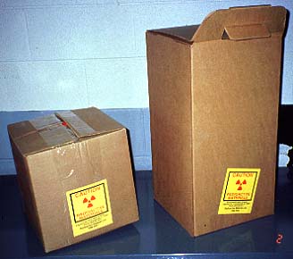 Waste will be packaged in yellow outer polyethylene bags with appropriate radioactive material markings. The only exception to this is material packaged in "sharps" containers or aqueous solutions in containers with tight fitting lids. "Radioactive Material" tape will be applied to the containers to identify them as radioactive. |