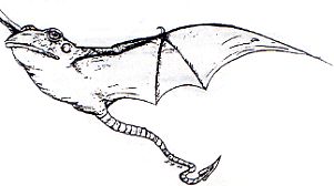 Water Leapers are said to resemble a large toad or bullfrog with wings like a bat instead of legs. They have sharp teeth and a long tail.