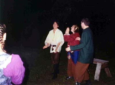 As evening fell, the tables were assembled under a pavillion & a celebratory meal was served to those who answered the call to help the town. After the meal, the adventurers gathered for entertainment, awards for the various day's events were handed out by the council members, auctions & raffles were held & the Winner & the team that settled the dispute was announced.