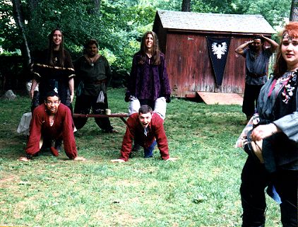 | The Half-Hill Dwarf Thurg ap Pear tries his skill at the 1st event in the H.I.T. contest as Jasper judges & Sadie Plumm looks on. | ||||||||||||||||||||||||||||||||||||||||||||||||||||||||||||||||||||||||||||||||||||||||