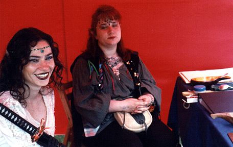 | Two beautiful Fey Females are a most Welcoming sight! Grey Elven Princess Amorel & the Cait Sidhe Luna Llewellyn rest in the Welcoming tent. | ||||||||||||||||||||||||||||||||||||||||||||||||||||||||||||||||||||||||||||||||||||||||