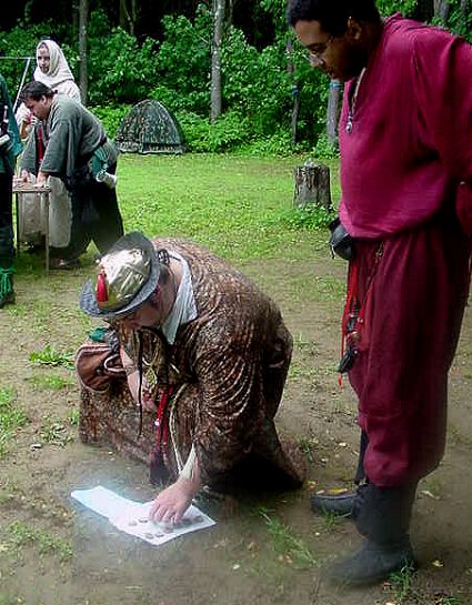 | The Wood Elf Riloen assists in the preparation of the Test of Wood as Calla and Half Hill Dwarf Thurg ap Pear look on. | |||||||||||||||||||||||||||||||||||||||||||||||||||||||||||||||||||||||||