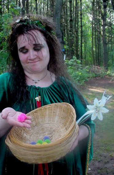 | Master of Nature Magics Quinscylla Pearberry explains the relationship between fertility & her test known as the "Flower Ball Basket Toss". |