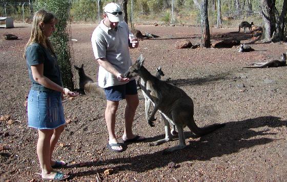 There's about a 100 of these guy's hopping around out here with us and most are eager for a handout. Feeding the animals is about the only way we could get Sarah out from behind the camera. |