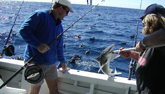 Here's a few photo's of the deep-sea fishing trip that me and Kevin had the pleasure of taking. We left port at Hillary's Boat Harbour and traveled 30 plus miles out into the Indean Ocean. It was a great day yielding a catch that we ended up having to give most of away to the neighbors. You'll see why later. |