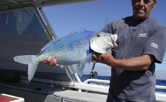 This is our skipper holding a Queen Snapper that one of the other guys caught. I don't think I could eat that beauty or bewty as the aussies would say. |