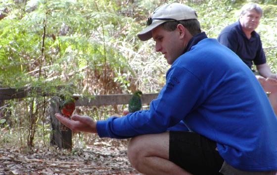 A few crushed crackers and a steady hand is all the wild parakeets needed for a photo. Eat your heart out Phil. |