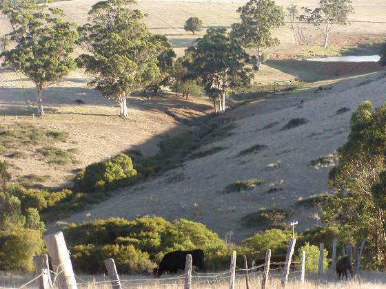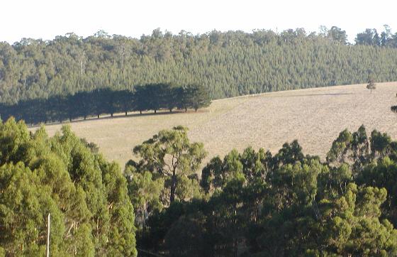 This was one of our views from the rammed earth cottage at Pump Hill Farm. Regretably Kevin's batteries died in his camera while we were here so the photo's of Pemberton are limited. Trust me though...morning breakfast barby's were great, the scenary was breathtaking and our cabin as warm as hot apple-pie. |