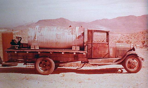 | Our 1920 model-T water truck we used to haul water to the house. This photo was taken in 1962 when we didnt have a water well. I used to ride on the back of this jelopy while Mom or Dad struggled getting bthis old relic up the hill. After it finally gave out Dad bought a 1-1/2 ton 1949 Ford flatbed. An improvement but not much! |