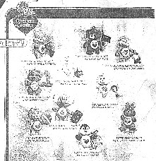 | 3 1/2 INCH COUSIN POSEABLES(RARE ONES) HERE YOU CAN SEE THERE ARE LOYAL HEART DOG WITH FLAG, PLAYFUL HEART MONKEY WITH ACCESSORY, PROUD HEART CAT IS DIAGONAL OF LOYAL HEART BUT IS ALMOST IMPOSSIBLE TO SEE, AND FINALY TREAT HEART PIG WITH ACCESSORY. SORRY FOR THE QUALITY OF THE PIC THIS IS AN ORIGINAL PRINT FROM HASBRO AND WAS NEVER REALISED. |