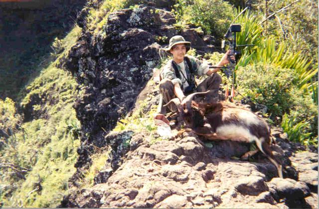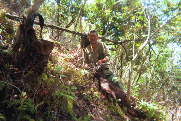 | Van Chun with a good sized billy in the 7-mile valley tree line. |