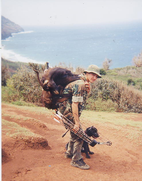 | These are all from a trip to Na'pali I took in january, 2002. I brought my dog along. He was only 3 months old and part lab so he wasn't fast enough to catch anything. He actually just scared goats away from me the whole time. Eventually, while he was off chasing goats in Kalalau, I was able to make a 23 yard shot at a feeding billy goat. | ||||||||||||||||||||||||
