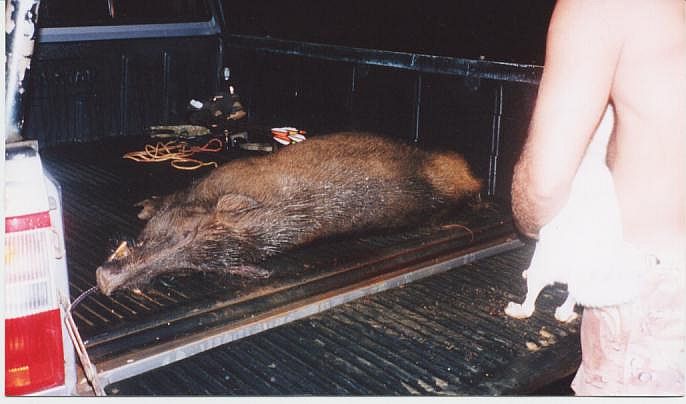 | This is a 180 pound boar I shot with my 45# bow. Was a 8 yard shot. | ||||||||||||||||||||||||||