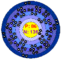 | Radon is the densest gas known. It is hard to study because any compunds which are formed are destroyed by hazardous radiation. It comes from the breakdown of uranium in soil, rock, and water. |