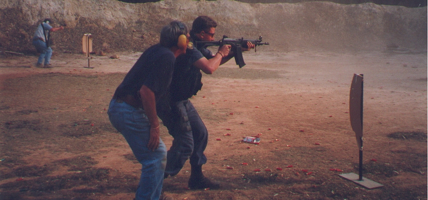 R/Constable Warren Nicholson (left) and myself, posing with a West Rand Dog Unit patrol vehicle. This picture was taken in 1999, prior to Warren's suicide in November, 2000. He will be fondly remembered, and is dearly missed.