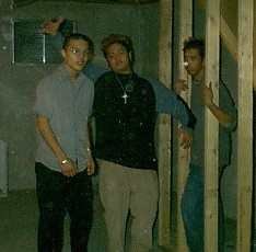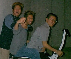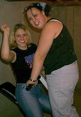 This is everyone just hanging out in the basement. There wasn't really anything to do so we just played with the lights there and turned them off and on with the music. Then, we started playing with my exercising machine rider thingie. That was basically it.