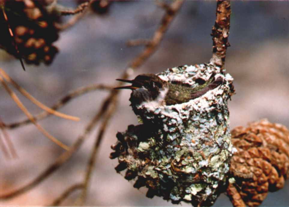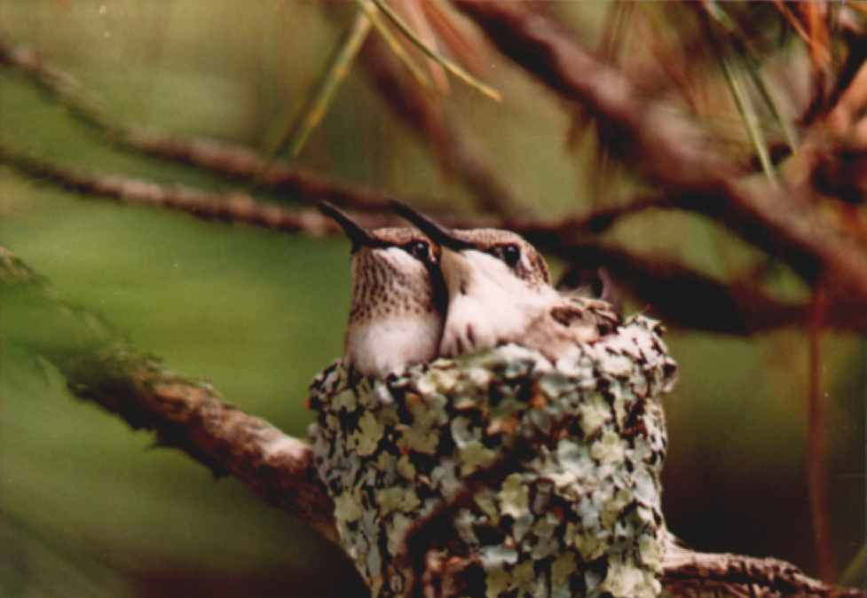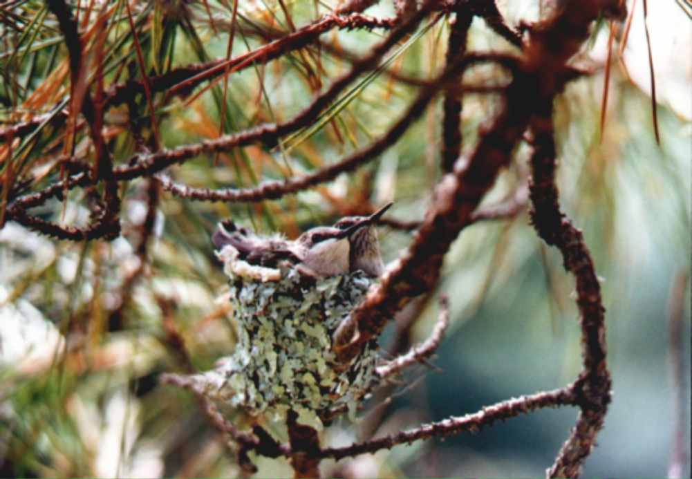 This photos were shot by Mrs. Boyd from Oak Ridge, Tennessee. She is the mother of my colleague Charles. She send me these wonderful photos of the Ruby-Throated Hummingbirds which build this very small nest in one of the backyard trees.