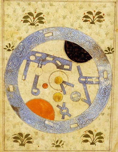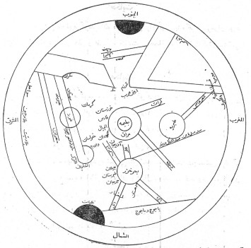 To next page Mohammad ebn Mahmud ebn Ahmad Tusi; 'Aja'eb al-Makhluqat va Ghara'eb al-Mojudat (1160) (The Wonders of Creation) From Tusi in Khorasan -------------------------------------------------- Taken from; The Miller Atlas. The map of the Indian Ocean shown is unique as the places shown on the east coast of africa do not appear in any other manuscript. |