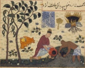 | On top the worldmap of the Manuscript and under showing a black servant at work (planting pepper) | ||||||||||||||||