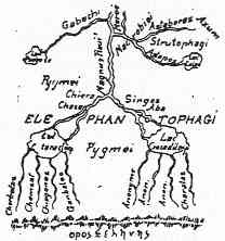 | The sources of the Nile; a drawing which he copied out of the classical geography he was commenting on. taken from the Miller atlas. | ||||||||