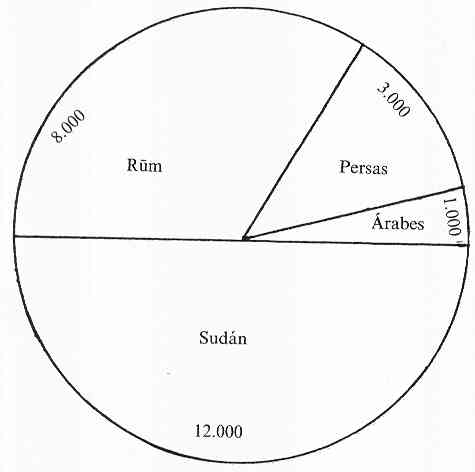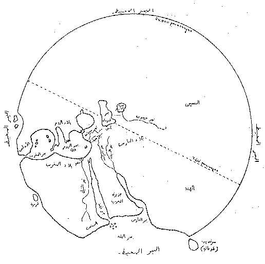| Al-Husayn Ali said of: Nasr b. Ali who says of: Abd al-Malik b. Qurayb who says: al-Nadr b. Hilal that heard it of Qatada that heard of Abu l-Yald who said: The Earth is 24.000 parasanges. He said: The Sudan is 12.000, Rum 8.000, Persia 3.000 and 1.000 parasanges for the Arabs.