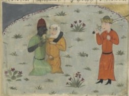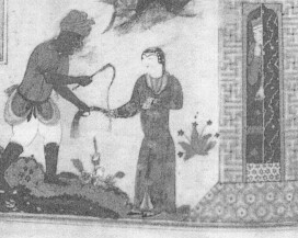 | From a mss of the French Nat. Library; persan 629, fol. 99v, Zangi embraces a young girl from the end of the 15th century at Shiraz | ||||||||||||||||||||||||||