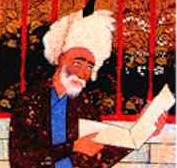 | A portrait of Amir Khusrau when giving a mss to the ruler | ||||||||||||||||||||||||||