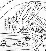 It is surely not written by Jayhani. The maps in the book resemble closely the maps ibn al-Balhi�s geography. With a bird on the world map that has its head pointing to China and its tail separating Egypt from Nubia. The tail of the bird represents the sources of the Nile; its body is the Mediterranean and the head the Black sea (or Caspian) its beak the Oxus and Jaxartes flowing into the Aral sea. |