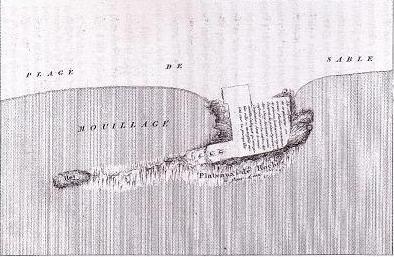 | Captain M.Guillain surveyed the east coast of Africa in 1846-1848 for the French government In the neighborhood of present day Italia he found a couple huts and ruins of a medieval town. He suspects that this must have been the place of the old Saerapion. In his days the place was called Quarcheikh, and in Portugees days it was known as Bandel-Velho (old harbor). One of the people on his ship made this drawing. | ||||||||||||||||||