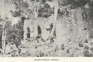 | Under; the ruins of an old Swahili mosque on the beach of Malindi, together with several pillar tombs. Most of this has disappeared since the town started growing. | |||||||||||||||||||||||||||||||