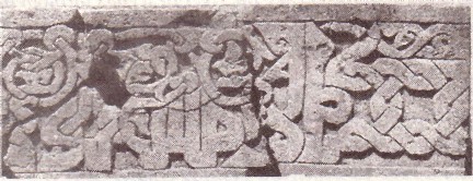 | A 44cm piece of a Kufic inscription found at Tumbatu from about 1100 (from Mark Horton) Another similar inscription is on the picture under and there is a third kufic inscription found at Kioni (near Kilifi). All three might be the work of the same craftsmen. | |||||||||||||||||||||||||||||||