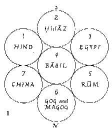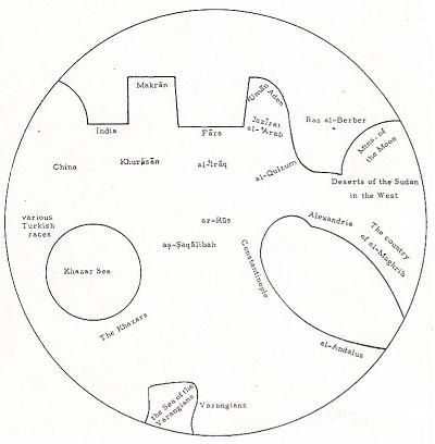 To next page Yakut (or Jakut) al Hamawi (1220) Kitab Mu'jam al-buldan (geographical directory) a Greek slave born in Aleppo ------------------------------------------------------ Yakut's view on the world as he copied it from Al Biruni. Taken from : Jwaideh, Wadie ; The introductory chapters of Yakut's.... East Africa he situates in the first clime (Hind) In it he inscribes: The first clime is that of India. Its limits are the Sind and the Sea in those parts of it that lie in the East, extending to Daybul of the land of the Sind and the islands that are named after it, namely, the Dibajat, the Zabay and the Zenj. The end of its limits (in the west) is Makran, which stretches to the confines of al-Basrah between India and the Yemen. Its sign is Capricorn; the Lord of its hour is Saturn when the moon is in Aquarius. |