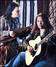 | On March 18, the two went to Cotabato to perform in a concert commemorating the eighth death anniversary of SaroBa�ares. The occasion was made all the more joyous because the courts had recently sentenced Saro's killers to life imprisonment. Justice had finally been served, after a seemingly interminable wait. "Dinalaw naming siya (We visited him)," recalls Carbon. "Binalita namin na gagawa kaming album. Ganoon ka-magical ang pakiramdam. Dala-dala namin ang spirit ni Saro pagbalik namin (We told him we were making an album. That's how magical it felt. We're bringing Saro's spirit in our comeback)." The next day they were back in Manila, in the studio, working on the album. The incident with the tape left little doubt that they had brought something back with them from Cotabato. Any lingering doubts were laid to rest when Asin took the stage at '70s Bistro. Opening with a medley of old Asin songs, Carbon and Aban conjured up the old magic. Carbon was in particularly fine voice, her instrument - aged like fine dark rhum - still capable of raising the hairs on the back of one's neck. For years, Pendong has held down Friday nights at the Bistro with his band Ang Grupong Pendong, and it showed in his onstage confidence and the ease with which he tore into the numbers. |