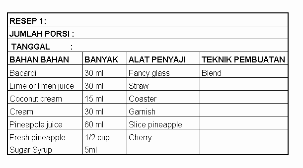 Contoh Penulisan Resep Pilihan untuk minuman