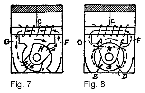 In Fig. 7, the pole (N) has moved over to (F) and the