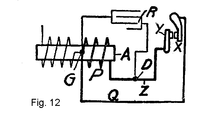 grounded end (G) of the primary and the breaker point (X), the latter being