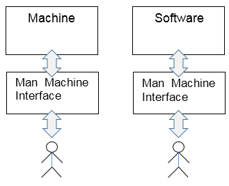 As there is no standard 'software machine', there is no standard man machine interface. Man has not got familiar or has not adapted to this machine.