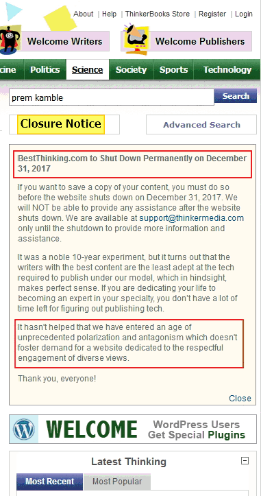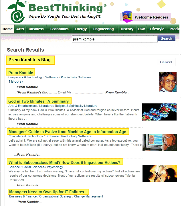 This is a screenshot of site Bestthinking.com with my blogs listed on the left side.