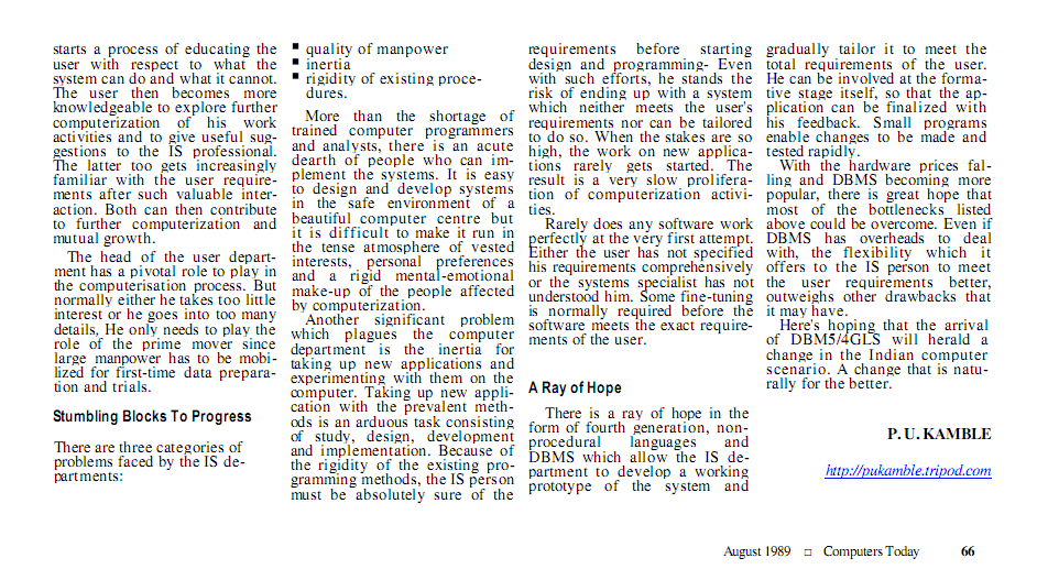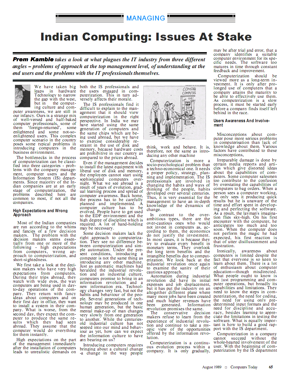 My article in Computers Today. Please wait till page1 displays below...         Read Comments   Submit Comments     Click here for Page2