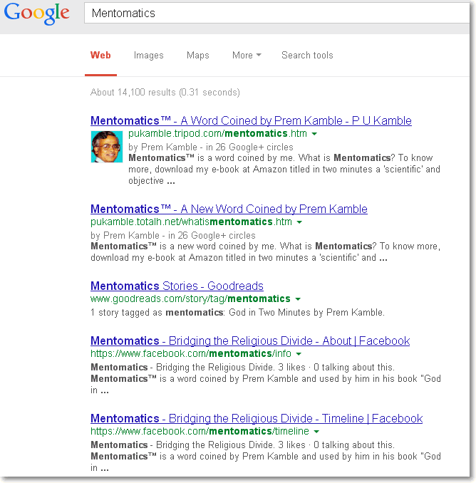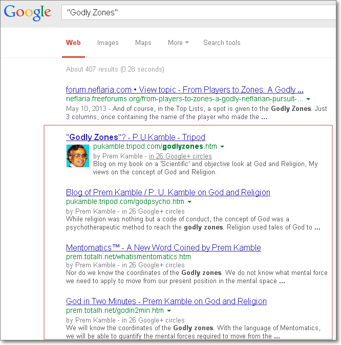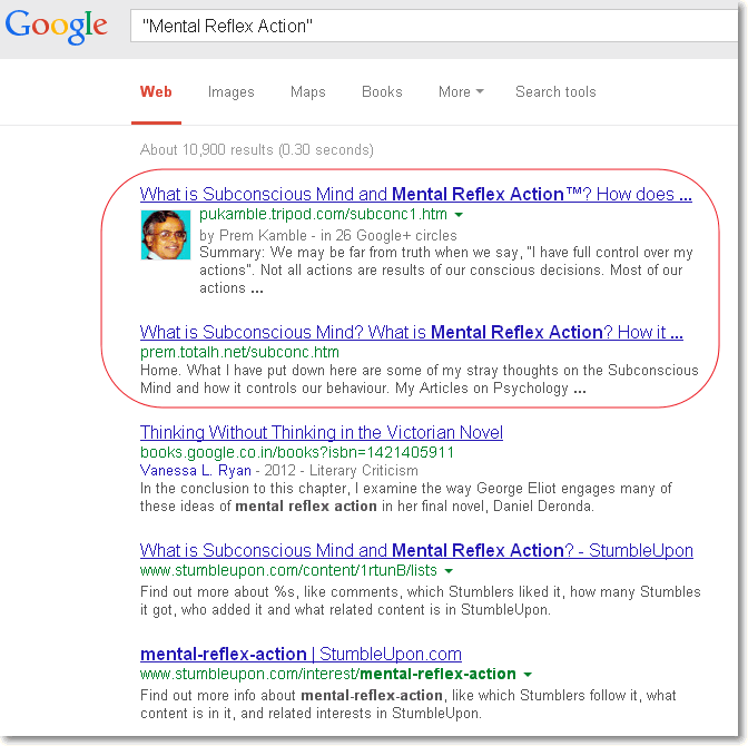 pages from my website as top search output. Google search-output screens are also reproduced below. (Also see