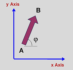 Fig. 8.1: In Physical Space, Physics & Maths inform us what force and angle (φ) are required to move from A to B