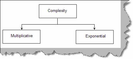 COCOMO views two types of complexity in a software project, one is the multiplicative complexity and the other is the exponential complexity. Exponential complexities of a project are those aspects, if they change slightly the estimation changes in a very huge manner. Multiplicative complexities are those aspects if they change only a proportional changes happen to estimation. For instance a changing customer issue is an exponential factor while a new technology is a multiplicative factor.