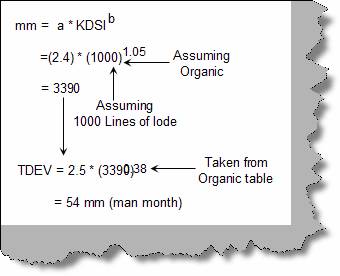 To calculate development time below is the formulae. So from the first formula we need to calculate the MM (man month) which is then fed in the below formula effort and development time.