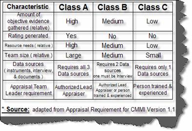 Class A: - This is the only method that can provide rating and get you a CMMI certificate. It requires all three sources of data instruments, interview and documents.
