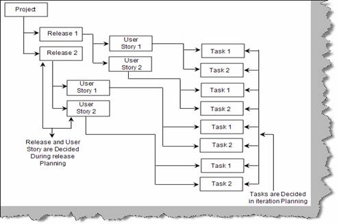 shown in figure ‘Release, Stories and Task’ has two releases one and two.