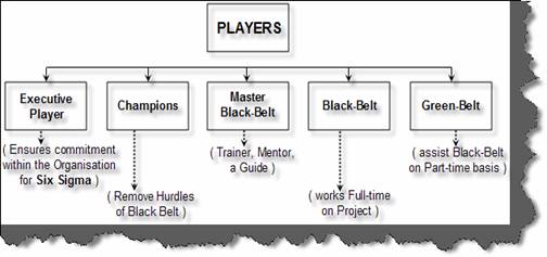 SIX sigma is not only about techniques, tools and statistics, but the main thing depends upon people. In SIX sigma there five key players:-
