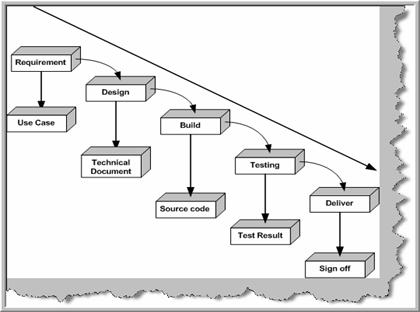 The figure shows waterfall Big Bang model which has several stages and are described as below:-