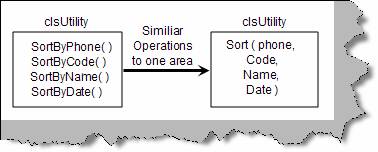 If we are having similar operations move them to one reusable code. For instance in the below class we have various sort function which sorts by phone, code, name and date. We can combine the same in to one function called as sort and make it simple.